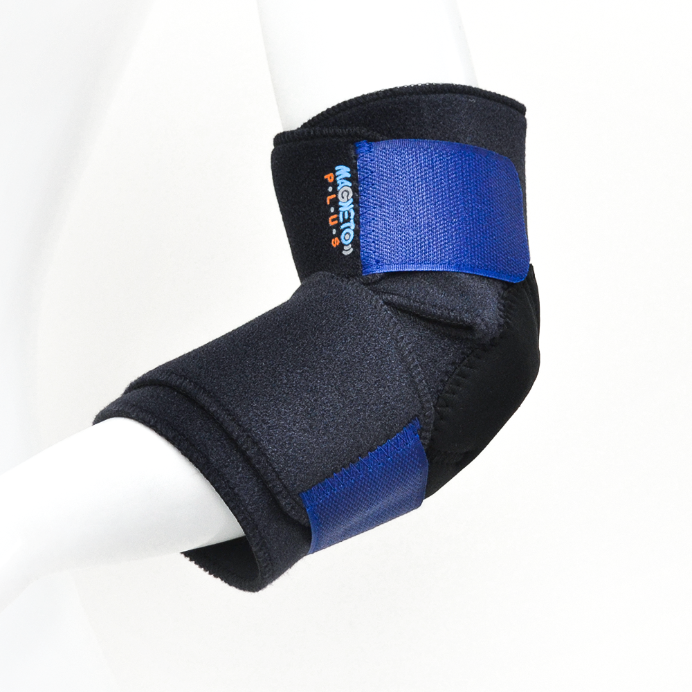 Codera con 4 magnetos alrededor del codo para activar la circulación. Es un coadyuvante en el tratamiento del dolor, activación de la circulación, oxigenación de tejidos y relajación de la zona afectada.