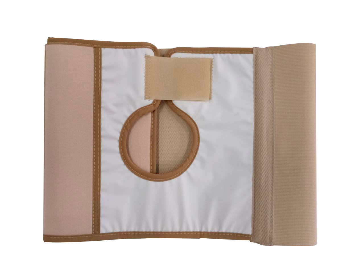 Órtesis ideal para después de colostomia, ileostomía o urostomía. El dispositivo fija la parte delantera y los lados de la pared abdominal, protegiendo de la sobretensión para evitar el infarto o prolapso intestinal. Reduce el riesgo de dolor, ardor o picazón asociado con la irritación alrededor del estoma o peristalsis intestinal.