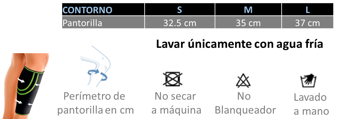 Soporte deportivo para pantorrilla, cómodo y práctico. Fabricado en neopreno micro perforado, y diseño deportivo que permite adaptarse sin molestias al músculo, uso en pantorrilla izquierda y derecha. Brinda estabilidad al músculo y/o articulación, lo protege de posibles lesiones, con la compresión suficiente para aliviar la tensión, permite la transpiración de la piel y contribuye a mejorar el rendimiento durante la actividad física.